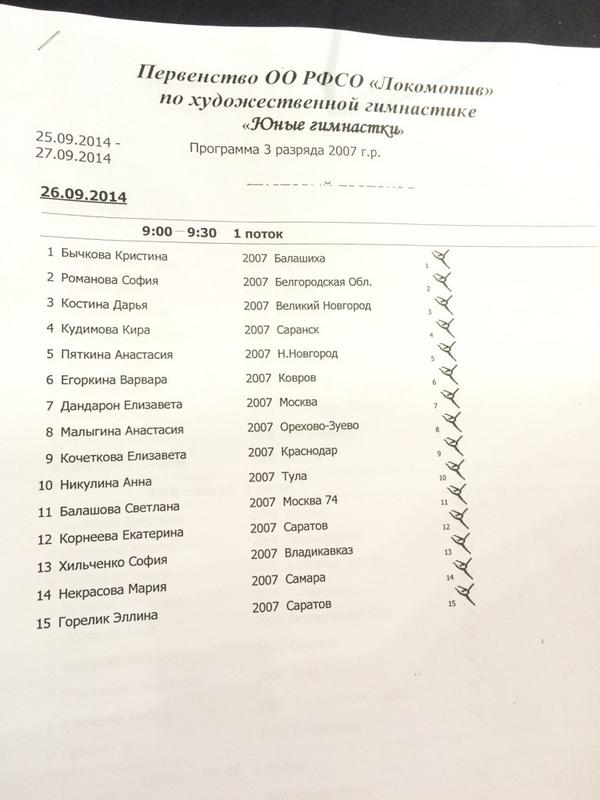 | Первенство ОО РФСО "Локомотив" "Юные гимнастки". Орехово-Зуево, 24-27 сентября
