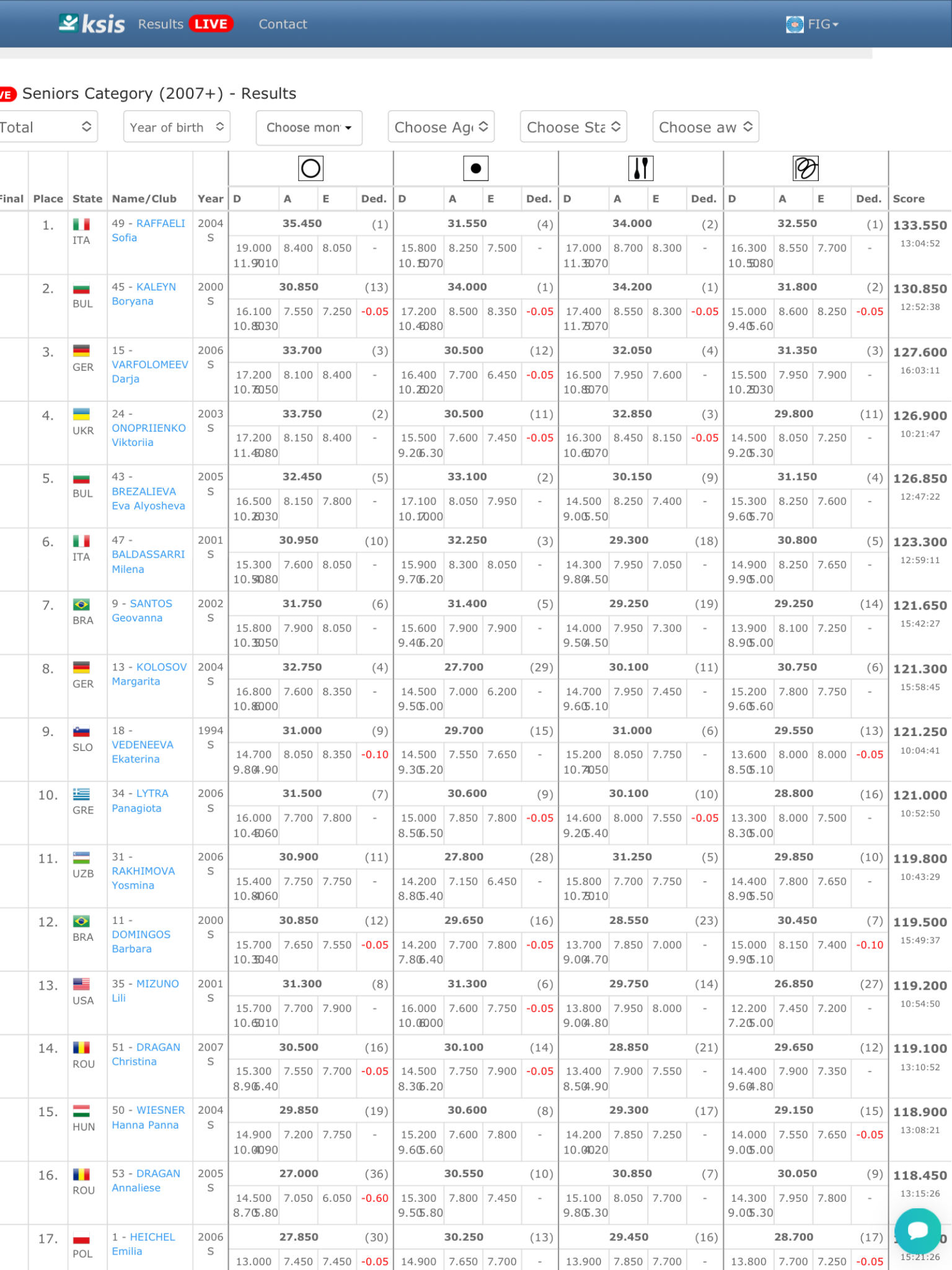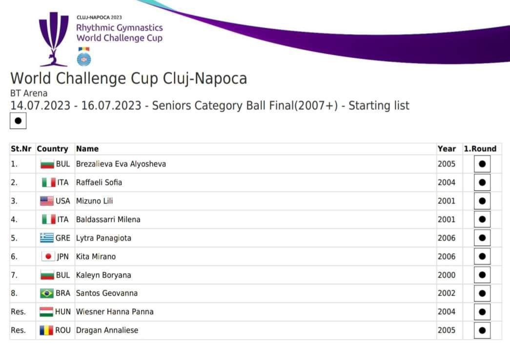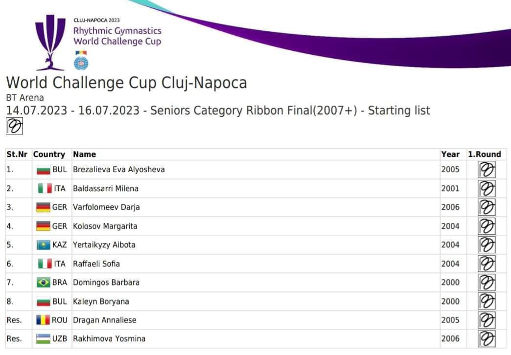Финалы в отдельных ВИДАХ (время киевское). 13:00-13:32 финал с обручем 13:37-14:09 финал с мячом 14:15-14:55 финал с 5 обручами 15:00-15:20 Церемония награждения 15:25-15:57 финал с булавами 16:02-16:34 финал с лентой 16:40-17:20 финал с 3 лентами/2 мячами 17:25-17:45 Церемония награждения