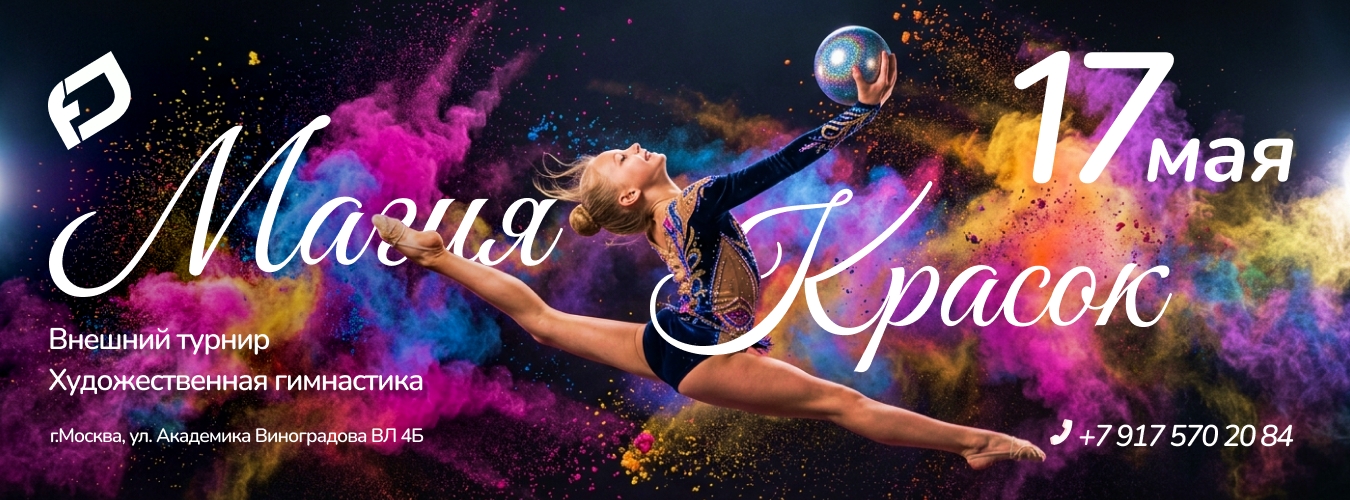 Летние учебно-тренировочные сборы по художественной гимнастике под руководством Мизенко Веры Сергеевны, 13-19 июля 2026, Суздаль 1568 Открытая Клубная Лига. Открытый турнир по художественной гимнастике «ЯРЧЕ СОЛНЦА», 17 мая 2026, МО, Мытищи 467 Турнир по художественной гимнастике РОО ЦХГ «Крылья» «Чемпионки», 10 мая 2026, Москва 135 Турнир по художественной гимнастике «Блеск композиции», 3 мая 2026, Москва 770 Турнир по художественной гимнастике «Шаги к успеху», 25 апреля 2026, Казань 534 Открытый турнир по художественной гимнастике «Сокровище нации», 29-30 мая 2026, Сочи 13 Открытые региональные соревнования и открытый турнир по художественной гимнастике «Нефтяные принцессы», 22-24 мая 2026, Сургут, ХМАО 29 Межрегиональные соревнования по художественной гимнастике «Посвященные Дню Защиты Детей», 29.05-02.06.2026, ЛО, Выборг 34 Региональные соревнования по художественной гимнастике «Сияние Карелии», 16-17 мая 2026, Сегежа, Республика Карелия 35 Фестиваль по художественной гимнастике «Совершенство», 23-24 мая 2026, Москва 22 Фестиваль по художественной гимнастике «Майская симфония», 31 мая 2026, Краснодар, пгт. Энем 19 Интенсив по художественной гимнастике, 4-10 июля 2026, Сочи 36 Открытый турнир по художественной гимнастике «Летний кубок Энергии таланта», 6 июня 2026, Сочи 38 Открытый турнир по художественной гимнастики «Кубок Дружбы», 17 мая 2026, Нижний Новгород 29 Интенсив под руководством олимпийской чемпионки в групповых упражнениях Анастасии Максимовой, 22-26 июня 2026, Казань 48