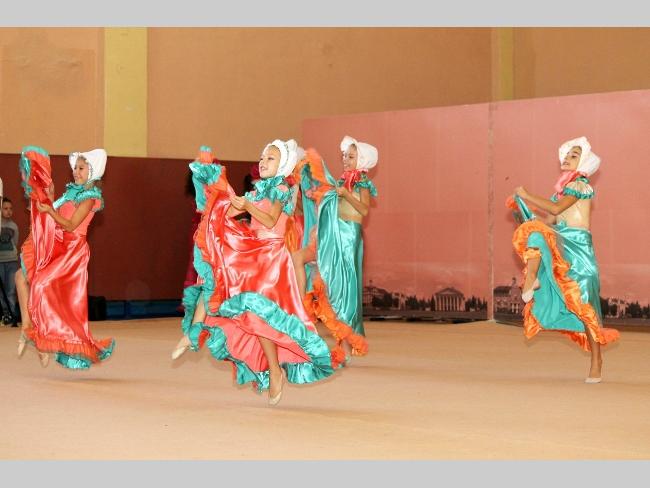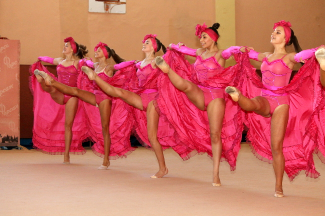 Для начала перед зрителями выступили опытные спортсменки, которые уже не первый год занимаются художественной гимнастикой. Они продемонстрировали упражнения с разными предметами. Также зрителям показали, как проходят тренировки новичков, а затем гимнастки исполнили зажигательный французский танец Канкан, который не оставил никого равнодушным и еще раз доказал, что художественная гимнастика — это грациозный вид спорта.