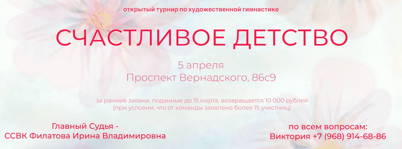 Главная » 2026 » Март » 11 » Открытый турнир по художественной гимнастике «Счастливое детство», 05 апреля 2026, Москва