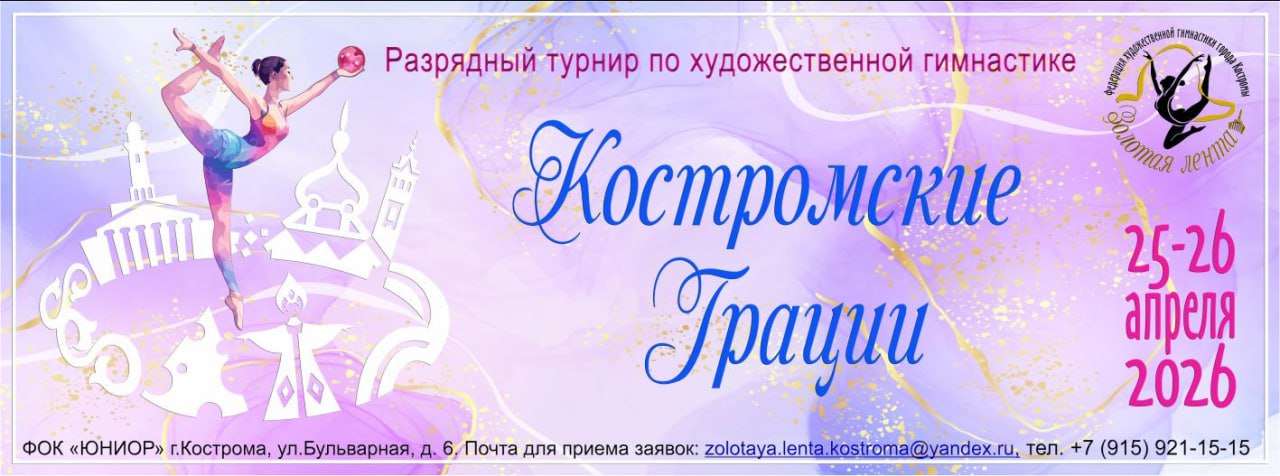 Главная » 2026 » Март » 7 » Разрядный турнир по художественной гимнастике «Костромские грации», 25-26 апреля 2026, Кострома